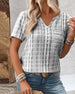 Icon1 Casual V Neck Striped Plaid T-Shirt