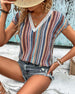 Icon1 Colorful Printed Lace V-Neck T-Shirt