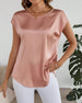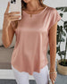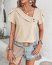 Icon1 Lapel Solid Color Button Short Sleeve Blouse