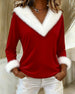 Lapel Three-Quarter Sleeve Contrast Color Blouse