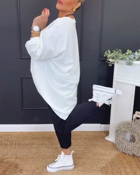 Short-Sleeved Solid Color Patchwork T-Shirt