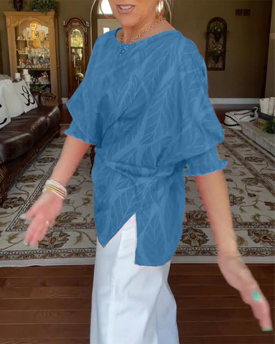 Round Neck Leopard Print Loose Blouse