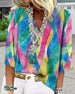 Lapel Three-Quarter Sleeve Contrast Color Blouse