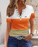 SPECIFICATIONS Top Type: Blouses Style: Casual Material: Cotton Blends Occasion: Daily Neckline: V neck_V Pattern Type: Color Block Sleeve Type: Regular sleeve Sleeve Length: Short Sleeve Fit Type: Regular Season: Summer Details: Buttons Package Includes: 1 x Blouse SIZE TABLE Size Bust Length CM INCH CM INCH S...
