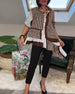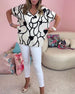 SPECIFICATIONS Top Type: Tops Style: Casual,Business Material: Cotton Blends Occasion: Daily,Work Neckline: V neck_V Pattern Type: Print Sleeve Type: Regular sleeve Sleeve Length: 3/4 Sleeve Fit Type: Regular Season: Spring,Summer,Fall Details: Patchwork,Shirred Package Includes: 1 x Top SIZE TABLE Size Bust Length CM INCH CM INCH ...