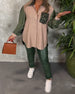 SPECIFICATIONS Top Type: Blouses Style: Casual Material: 3% Spandex, 97% Polyester Occasion: Daily Neckline: V neck_V Pattern Type: Print Sleeve Type: Regular sleeve Sleeve Length: Nine Points Sleeve Fit Type: Regular Season: Spring,Fall,Winter Details: Patchwork Package Includes: 1 x Blouse SIZE TABLE Size Bust Length Sle...