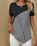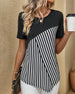 SPECIFICATIONS Top Type: Blouses Style: Casual Material: Cotton Blends Occasion: Daily Neckline: Round Neck Pattern Type: Striped,Color Block Sleeve Type: Regular sleeve Sleeve Length: Short Sleeve Fit Type: Regular Season: Summer Package Includes: 1 x Blouse SIZE TABLE Size Bust Length CM INCH CM INCH S 95 37.40 68 26.77 M...