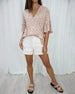 SPECIFICATIONS Top Type: Blouses Style: Casual Material: Cotton Blends Occasion: Daily Neckline: V neck_V Pattern Type: Floral Sleeve Type: Flare Sleeve Sleeve Length: Half Sleeve Fit Type: Regular Season: Spring Details: Buttons,Shirred Package Includes: 1 x Blouse SIZE TABLE Size Bust Length CM INCH CM INCH S 95 37.40 68 26...