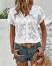 SPECIFICATIONS Top Type: Blouses Style: Casual Material: Cotton Blends,Lace Occasion: Daily Neckline: V neck_V Pattern Type: Floral,Solid Color Sleeve Type: Regular sleeve Sleeve Length: Short Sleeve Fit Type: Regular Season: Summer Details: Lace Package Includes: 1 x Blouse SIZE TABLE Size Bust Length CM INCH CM INCH S 96 37.80 ...
