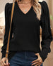 SPECIFICATIONS Top Type: Tops Style: Casual Material: Cotton Blends Occasion: Daily Neckline: V neck_V Pattern Type: Solid Color Sleeve Type: Regular sleeve Sleeve Length: Long Sleeve Fit Type: Regular Season: Fall,Winter Package Includes: 1 x Top SIZE TABLE Size Bust Waist Shoulder Sleeves CM INCH CM INCH CM INCH CM INCH XS 84 33....