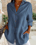 SPECIFICATIONS Top Type: Tops Style: Casual Material: Cotton Blends Occasion: Daily Neckline: Lapel Pattern Type: Solid Color Sleeve Type: Regular sleeve Sleeve Length: Long Sleeve Fit Type: Regular Season: Spring,Fall Details: Pocket Package Includes: 1 x Top SIZE TABLE Size Bust Sleeves Length CM INCH CM INCH CM INCH S 97 38...