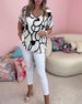 SPECIFICATIONS Top Type: Shirt Style: Casual Material: 100% Polyester Occasion: Daily Neckline: Lapel Pattern Type: Floral,Leopard Sleeve Type: Regular sleeve Sleeve Length: 3/4 Sleeve Fit Type: Loose Season: Spring,Fall Details: Buckle Package Includes: 1 x Shirt SIZE TABLE Size Bust Before After Sleeves Shoulder CM INCH CM INCH CM I...