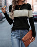 SPECIFICATIONS Top Type: Tops Style: Casual Material: Cotton Blends Occasion: Daily Neckline: Round Neck Pattern Type: Color Block Sleeve Type: Regular sleeve Sleeve Length: Long Sleeve Fit Type: Regular Season: Spring,Fall Package Includes: 1 x Top SIZE TABLE Size Bust Sleeves Length CM INCH CM INCH CM INCH S 90 35.43 64 25.2...