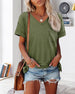 SPECIFICATIONS Top Type: T-shirt Style: Casual,Business Material: Cotton,Spandex Occasion: Daily,Work Neckline: V neck_V Pattern Type: Solid Color Sleeve Type: Regular sleeve Sleeve Length: Short Sleeve Fit Type: Regular Season: Spring,Summer,Fall Details: Pocket Package Includes: 1 x T-shirt SIZE TABLE Size Bust Length Sleeve Length CM...