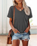 SPECIFICATIONS Top Type: Blouses Style: Casual Material: Cotton Blends Occasion: Daily Neckline: V neck_V Pattern Type: Solid Color Sleeve Type: Regular sleeve Sleeve Length: Short Sleeve Fit Type: Regular Season: Summer Package Includes: 1 x Blouse SIZE TABLE Size Bust Length CM INCH CM INCH S 95 37.40 65 2...