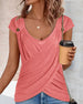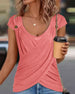 SPECIFICATIONS Top Type: Blouses Style: Casual Material: 100% Polyester Occasion: Daily Neckline: V neck_V Pattern Type: Solid Color Sleeve Type: Regular sleeve Sleeve Length: Short Sleeve Fit Type: Regular Season: Spring, Summer, Fall Details: Buttons, Drawstring Package Includes: 1 x Blouse SIZE TABLE Size Bust Length cm ...