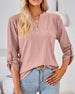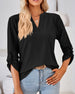 SPECIFICATIONS Top Type: Blouses Style: Elegant, Business Material: Chiffon, Polyester Occasion: Daily, Work Neckline: V neck_V Pattern Type: Solid Color Sleeve Type: Regular sleeve Sleeve Length: Long Sleeve Fit Type: Regular Season: Spring, Summer, Fall Details: Patchwork, Buttons Package Includes: 1 x Blouse SIZE TABLE Size...