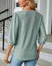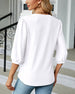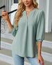 SPECIFICATIONS Top Type: Blouses Style: Elegant, Business Material: Artificial Cotton, Polyester Occasion: Daily, Work Neckline: V neck_V Pattern Type: Solid Color Sleeve Type: Lantern Sleeve Sleeve Length: 3/4 Sleeve Fit Type: Regular Season: Spring, Summer, Fall Package Includes: 1 x Blouse SIZE TABLE Size Bust Length Sle...
