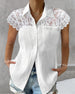 SPECIFICATIONS Top Type: Shirts Style: Elegant Material: Cotton Blends, Lace Occasion: Daily Neckline: Shirt Collar Pattern Type: Solid Color Sleeve Type: Regular sleeve Sleeve Length: Short Sleeve Fit Type: Regular Season: Spring, Summer, Fall Details: Patchwork, Buttons, Lace Package Includes: 1 x Shirt SIZE TABLE Size Bust...