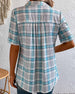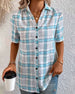 SPECIFICATIONS Top Type: Blouse Style: Casual, Basics Material: Cotton Blends Occasion: Daily, Vacation, Work Neckline: Shirt Collar Pattern Type: Plaid Sleeve Type: Regular sleeve Sleeve Length: Short Sleeve Fit Type: Regular Season: Summer Details: Pocket, Buckle Package Includes: 1 x Blouse SIZE TABLE Size Bust Length S...