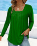 SPECIFICATIONS Top Type: Tops Style: Casual Material: Cotton Blends Occasion: Daily Neckline: Square Neck Pattern Type: Solid Color Sleeve Type: Regular sleeve Sleeve Length: Long Sleeve Fit Type: Regular Season: Spring, Summer, Fall Details: Shirred Package Includes: 1 x Top SIZE TABLE Size Bust Length Sleeve Length CM INC...