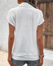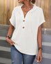 SPECIFICATIONS Top Type: Blouses Style: Casual Material: Cotton Blends Occasion: Daily Neckline: Round Neck Pattern Type: Solid Color Sleeve Type: Regular sleeve Sleeve Length: Short Sleeve Fit Type: Regular Season: Spring, Summer, Fall Details: Buttons, Shirred Package Includes: 1 x Blouse SIZE TABLE Size Bust Length Shoulde...