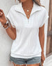SPECIFICATIONS Top Type: Blouses Style: Casual Material: Cotton Blends Occasion: Daily Neckline: Lapel Pattern Type: Solid Color Sleeve Type: Bat sleeve Sleeve Length: Short Sleeve Fit Type: Regular Season: Spring, Summer, Fall Details: Zipper Package Includes: 1 x Blouse SIZE TABLE Size Bust Length Hem CM INCH CM INCH CM INCH S 95 ...
