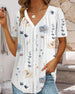 SPECIFICATIONS Top Type: Tops Style: Casual Material: Cotton Blends Occasion: Daily Neckline: V neck_V Pattern Type: Leaves Sleeve Type: Regular sleeve Sleeve Length: 3/4 Sleeve Fit Type: Regular Season: Spring, Summer, Fall Details: Buttons Package Includes: 1 x Top SIZE TABLE Size Bust Length CM INCH CM INCH S 95 37.40 67...