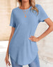 SPECIFICATIONS Top Type: T-shirt Style: Casual Material: Cotton Blends Occasion: Daily Neckline: V neck_V Pattern Type: Solid Color Sleeve Type: Raglan sleeve Sleeve Length: Short Sleeve Fit Type: Regular Season: Spring, Summer, Fall Package Includes: 1 x T-shirt SIZE TABLE (cm) Size Bust Length Sleeve Length CM INCH CM INC...