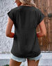 SPECIFICATIONS Top Type: T-shirt Style: Casual, Business Material: Cotton Blends Occasion: Daily, Work Neckline: V neck_V Pattern Type: Solid Color Sleeve Type: Ruffle Sleeve Sleeve Length: Short Sleeve Fit Type: Regular Season: Spring, Summer, Fall Details: Cut Out Package Includes: 1 x T-shirt SIZE TABLE Size Bust Length CM...