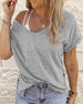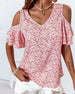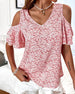 SPECIFICATIONS Top Type: T-shirt Style: Casual Material: Cotton Blends Occasion: Daily Neckline: V neck_V, Cold Shoulder Pattern Type: Floral, Print Sleeve Type: Cold Shoulder Sleeve Length: Short Sleeve Fit Type: Regular Season: Spring, Summer, Fall Package Includes: 1 x T-shirt SIZE TABLE (cm) Size Bust Length cm inch cm in...
