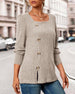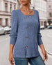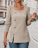SPECIFICATIONS Top Type: Tops Style: Elegant, Business Material: 95% polyester, 5% spandex Occasion: Daily, Work Neckline: Square Neck Pattern Type: Solid Color Sleeve Type: Lantern Sleeve Sleeve Length: Long Sleeve Fit Type: Regular Season: Spring, Fall, Winter Details: Buttons, Slit Package Includes: 1 x Top SIZE TABLE Size Bust Lengt...