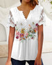 SPECIFICATIONS Top Type: T-shirt Style: Elegant Material: Cotton Blends, Lace Occasion: Daily Neckline: V neck_V Pattern Type: Floral, Print Sleeve Type: Regular sleeve Sleeve Length: Short Sleeve Fit Type: Regular Season: Spring, Summer, Fall Details: Patchwork, Buttons, Lace Package Includes: 1 x T-shirt SIZE TABLE (cm) Size ...