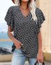 SPECIFICATIONS Top Type: Blouses Style: Casual Material: Spandex Occasion: Daily Neckline: V neck_V Pattern Type: Floral, Print Sleeve Type: Ruffle Sleeve Sleeve Length: Short Sleeve Fit Type: Loose Season: Spring, Summer, Fall Package Includes: 1 x Blouse SIZE TABLE (cm) Size Bust Length cm inch cm inch S 100 39.4 65 25.6 ...
