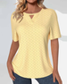 SPECIFICATIONS Top Type: Tops Style: Casual Material: Cotton Blends Occasion: Daily Neckline: Round Neck Pattern Type: Solid Color Sleeve Type: Regular sleeve Sleeve Length: Short Sleeve Fit Type: Regular Season: Spring, Summer, Fall Details: Cut Out Package Includes: 1 x Top SIZE TABLE Size Bust Length CM INCH CM INCH S 95...