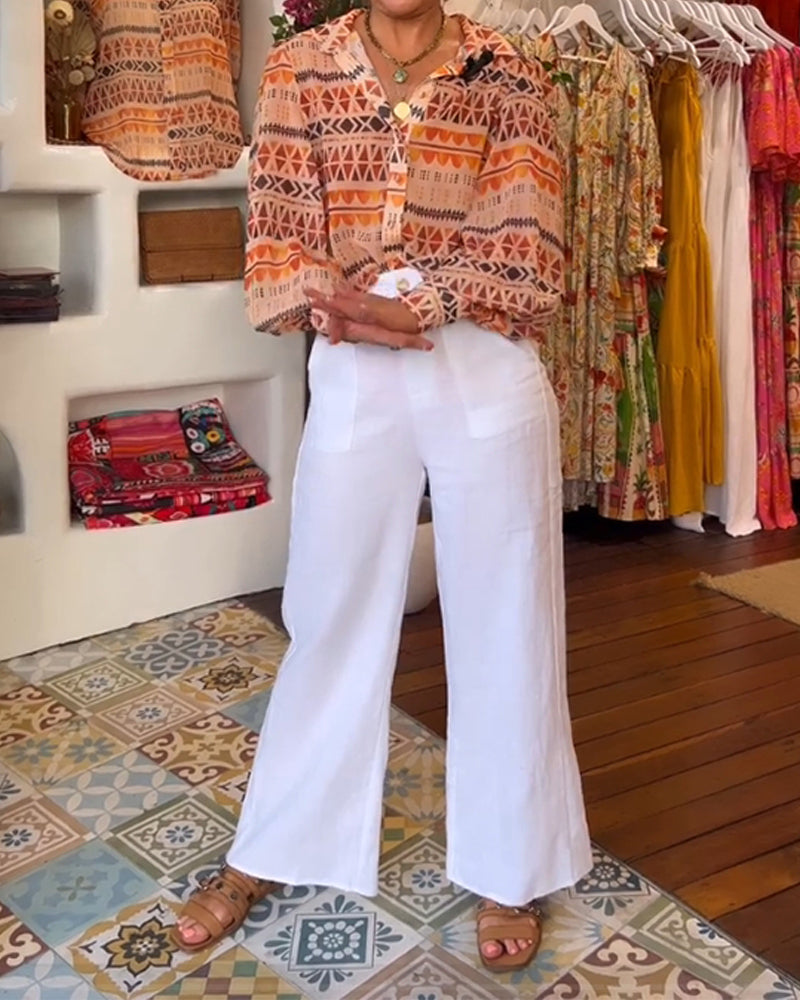 Lapel Colorful Printed Blouse with Buttons