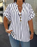 SPECIFICATIONS Top Type: Blouses Style: Casual Material: Cotton Blends Occasion: Daily Neckline: V neck_V Pattern Type: Striped Sleeve Type: Regular sleeve Sleeve Length: Short Sleeve Fit Type: Regular Season: Spring,Summer Details: Buttons Package Includes: 1 x Blouse SIZE TABLE Size Bust Length CM INCH CM INCH S 97 38.19 65 25...