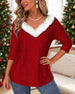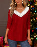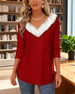 Fashionable Contrast Color V-Neck Long-Sleeved Top