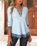 SPECIFICATIONS Top Type: Tops Style: Casual Material: Cotton Blends Occasion: Daily Neckline: V neck_V Pattern Type: Color Block Sleeve Type: Regular sleeve Sleeve Length: Long Sleeve Fit Type: Loose Season: Fall,Winter Details: Buttons Package Includes: 1 x Top SIZE TABLE Size Bust Length CM INCH CM INCH S 92 36.22 65 25.59 M...