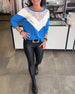 Colorblock Patchwork Fashionable Lapel Sweatshirt