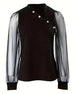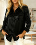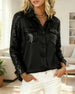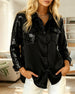 Elegant Sequin-Satin Patchwork Collared Shirt
