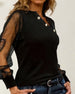 SPECIFICATIONS Top Type: Tops Style: Elegant Material: Mesh,Velvet Occasion: Daily Neckline: U Neck_U Pattern Type: Solid Color Sleeve Type: Regular sleeve Sleeve Length: Long Sleeve Fit Type: Regular Season: Fall,Winter Details: Patchwork,Bowknot Package Includes: 1 x Top SIZE TABLE Size Bust Length CM INCH CM INCH S 97 38.19 6...