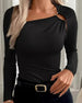 Fashionable Irregular Button Long-Sleeved T-Shirt