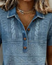 SPECIFICATIONS Top Type: Tops Style: Casual Material: Cotton Blends,Denim Occasion: Daily Neckline: Lapel Pattern Type: Color Block Sleeve Type: Regular sleeve Sleeve Length: Short Sleeve Fit Type: Regular Season: Spring,Summer Details: Buttons Package Includes: 1 x Top SIZE TABLE Size Bust Length CM INCH CM INCH S 97 38.19 65 2...