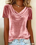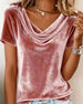 SPECIFICATIONS Top Type: T-shirt Style: Casual Material: Velvet Occasion: Daily Neckline: Draped Collar Pattern Type: Solid Color Sleeve Type: Regular sleeve Sleeve Length: Short Sleeve Fit Type: Regular Season: Spring,Summer Package Includes: 1 x T-shirt SIZE TABLE Size Bust Length CM INCH CM INCH S 97 38.19 65 25.59 M 101 39...