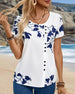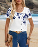 V-Neck Floral Print Short-Sleeved T-Shirt