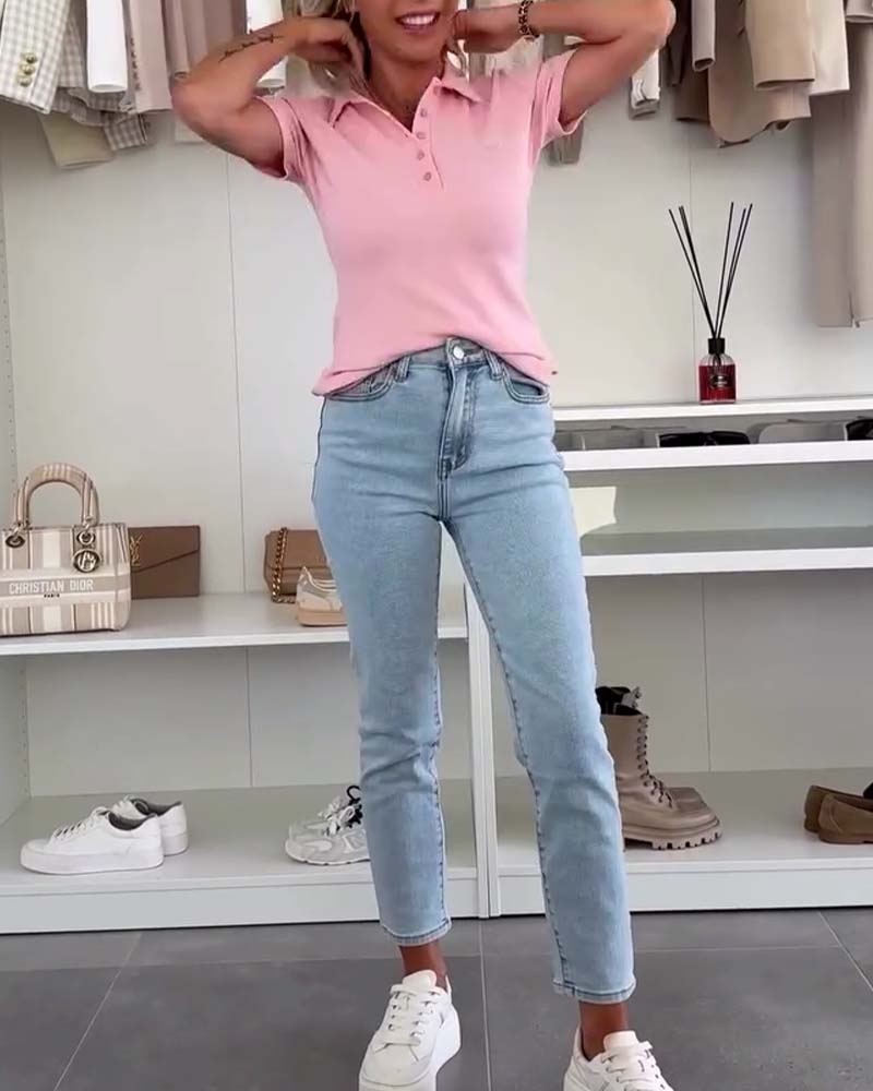 Lapel Polo Shirt Solid Color Slim Fit T-Shirt