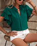SPECIFICATIONS Top Type: Blouses Style: Casual Material: Cotton Blends Occasion: Daily Neckline: V neck_V Pattern Type: Solid Color Sleeve Type: Ruffle Sleeve Sleeve Length: Short Sleeve Fit Type: Regular Season: Spring,Summer Details: Ruffle Package Includes: 1 x Blouse SIZE TABLE Size Bust Shoulder Length Sleeves CM INCH CM I...