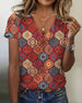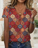 SPECIFICATIONS Top Type: T-shirt Style: Casual,Vintage Material: Cotton Blends Occasion: Daily Neckline: V neck_V Pattern Type: Tribal Print,Print Sleeve Type: Regular sleeve Sleeve Length: Short Sleeve Fit Type: Regular Season: Spring,Summer,Fall Package Includes: 1 x T-shirt SIZE TABLE Size Bust Length CM INCH CM INCH S 95 37.40 65...