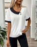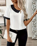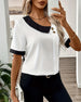 SPECIFICATIONS Top Type: T-shirt Style: Casual Material: Cotton Blends Occasion: Daily Neckline: Slant Collar Pattern Type: Color Block Sleeve Type: Regular sleeve Sleeve Length: Short Sleeve Fit Type: Regular Season: Spring,Summer Details: Buttons Package Includes: 1 x T-shirt SIZE TABLE Size Bust Length CM INCH CM INCH S 97 38...